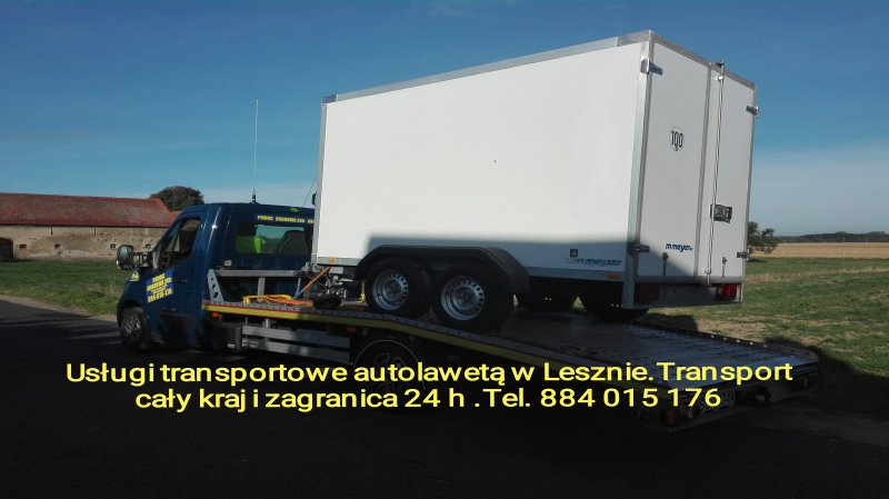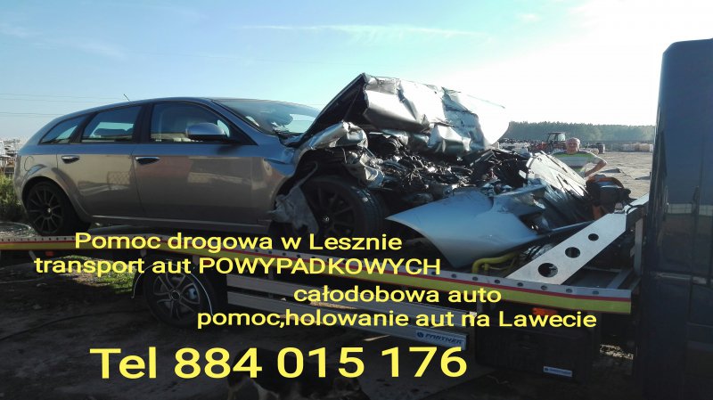 Dysponujemy lawetą w Lesznie do przewozu 6 pasażerów + auto. LAWETA LESZNO. AUTOLAWETA LESZNO..POMOC DROGOWA LESZNO S5.HOLOWANIE LESZNO POJAZDÓW Z S5.DOWÓZ PALIWA LESZNO S5.POMOC PRZY WYMIANIE KOŁA. WULKANIZACJA. AWARYJNE OTWIERANIE AUT LESZNO.Oferujemy usługi auto pomocy drogowej i transport aut lawetą w Lesznie 24h.Transport pojazdów cały kraj.Transport maszyn rolniczych,towarów i różnych materiałów.Jesteśmy dostępni w Lesznie 24h.Odbieramy telefony także w nocy.